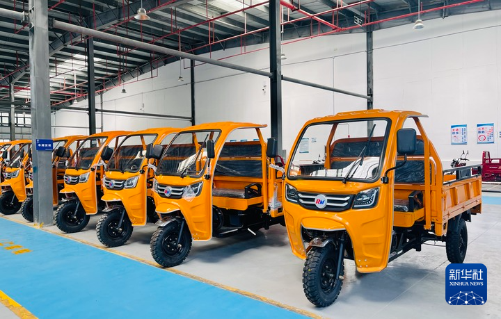 6月8日,西藏吉隆瑞尼機(jī)械制造有限公司倉(cāng)庫內(nèi)等待出口的三輪車。新華社記者蔣夢(mèng)辰 攝