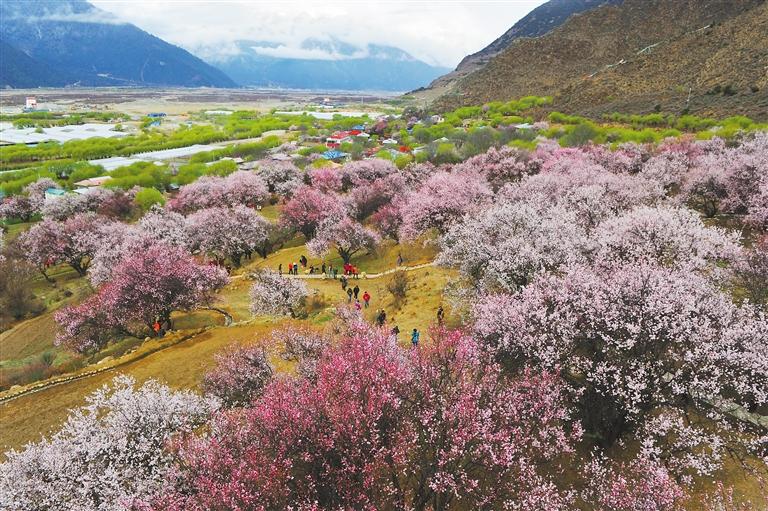 嘎拉村坐落在美麗的尼洋河畔,有著西藏“桃花第一村”的美譽(yù)。每年三四月份,全村270余畝的野桃花競(jìng)相綻放,吸引眾多游客奔赴這處“世外桃源”。