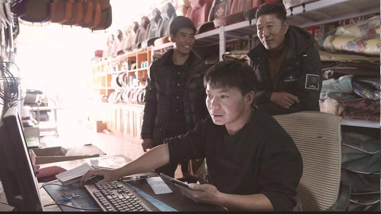 扎西多吉正在查看產(chǎn)品。文/圖 通訊員 果珍 次昂 大德吉 記者 張雪芳