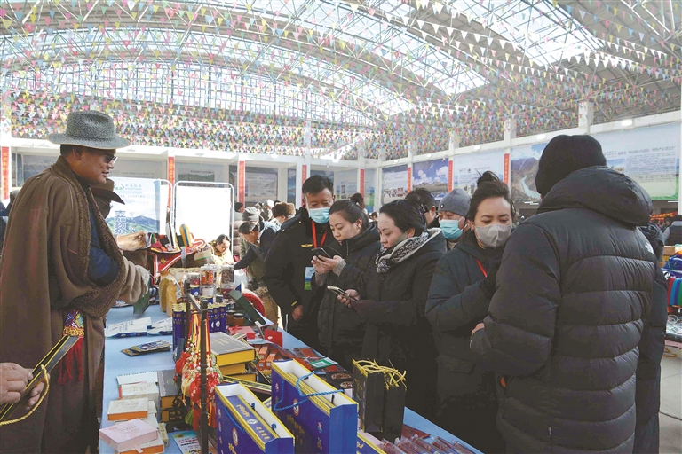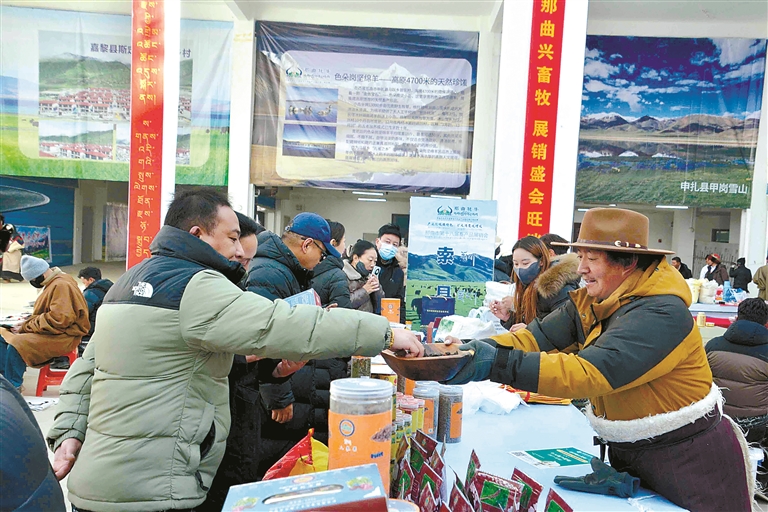 這次展銷會不僅線下熱鬧,線上也同樣火爆。為了讓各類產(chǎn)品走得更遠,展銷會特意搭建起“線上直播帶貨+線下現(xiàn)場選購”的雙線銷售通道,一邊是線下市民現(xiàn)場挑、現(xiàn)場買,新鮮看得見、品質摸得著;一邊是主播對著鏡頭,向全國網(wǎng)友推介那曲好物,讓遠在千里之外的消費者也能品嘗到那曲味道。同時,展銷會還邀請電商平臺、采購商代表和參展商精準對接,幫本土農(nóng)畜產(chǎn)品打通銷路,再也不愁“酒香巷子深”;積極引導機關、企事業(yè)單位及社會各界參與消費幫扶,以“以購代扶”“以買促銷”的方式助力本土產(chǎn)業(yè)發(fā)展,在全市形成“人人支持本土產(chǎn)業(yè)、人人參與鄉(xiāng)村振興”的濃厚氛圍。