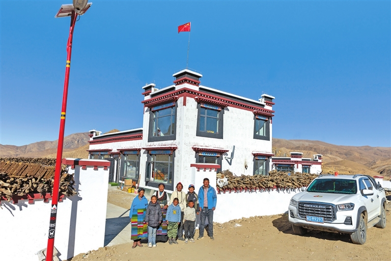 在昂仁縣卡嘎鎮(zhèn)薩律村,村民扎西加措一家正忙著布置新家。屋內(nèi),傳統(tǒng)的藏式彩繪已經(jīng)完成;屋外,新定制的家具正一件件搬入。