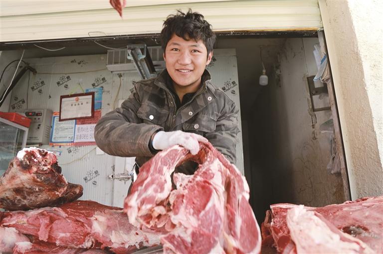 商戶正在展示自家牛肉。文/圖 通訊員 果珍 仁青 記者 張雪芳