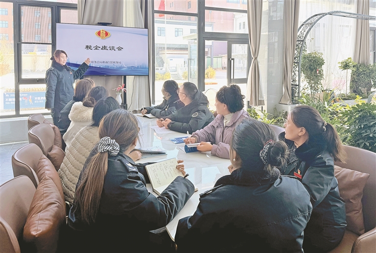 圖為國家稅務(wù)總局謝通門縣稅務(wù)局召開稅企座談會,向企業(yè)問計問需。記者 袁海霞 攝