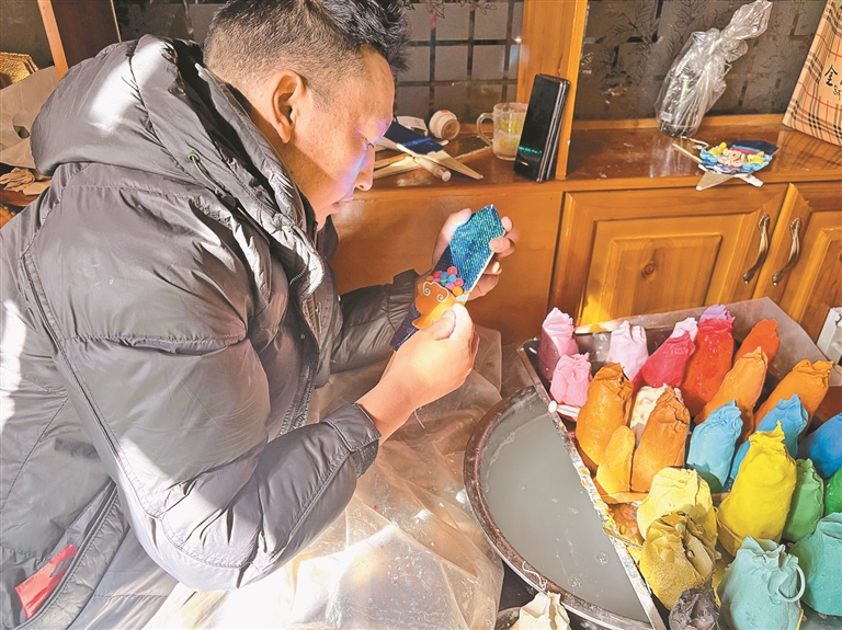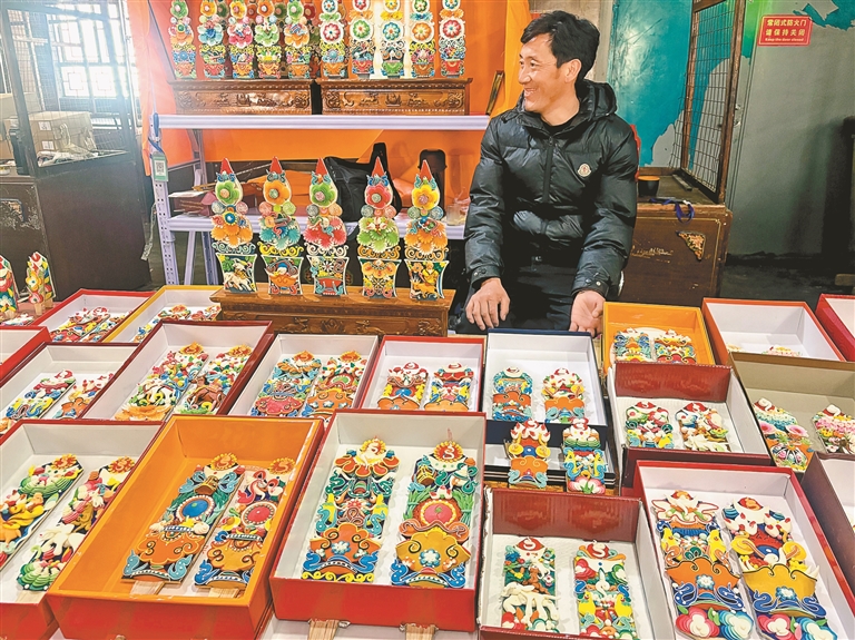 “我從2013年開始學(xué)做酥油花,到現(xiàn)在有了不小的長進(jìn)?!贝稳手钢矍暗乃钟突ㄗ髌方榻B道,這些圖案有的象征家庭和睦、民族團(tuán)結(jié),有的祈愿老人康健、稚童茁壯?!耙郧皼]學(xué)這門手藝的時(shí)候,只能在家閑著。后來跟著老師系統(tǒng)學(xué)習(xí)制作酥油花,不光掌握了這門手藝,還能靠它養(yǎng)活自己和家人?!贝稳恃哉Z間滿是感激,談及未來更是充滿期待,他表示,等自己技藝精進(jìn)、達(dá)到一定造詣后,也想像老師那樣收徒傳藝,有十足的信心把這門非遺手藝好好傳承下去。