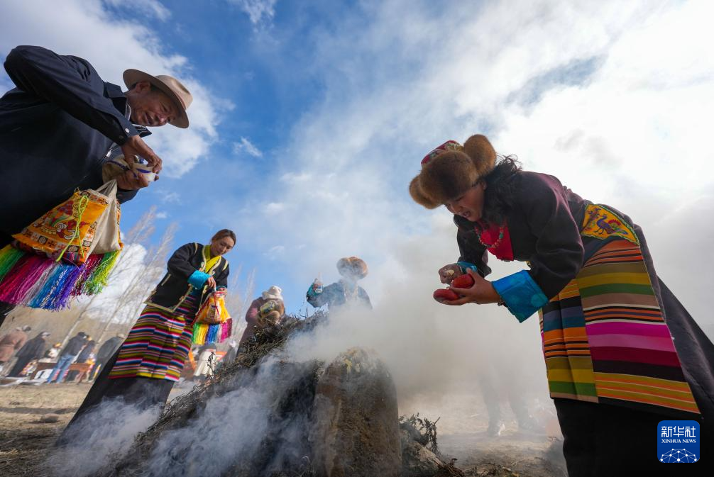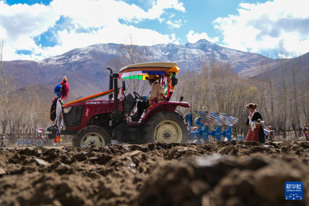 3月16日,西藏山南市結(jié)巴鄉(xiāng)結(jié)巴村村民舉行春耕儀式。新華社記者 晉美多吉 攝