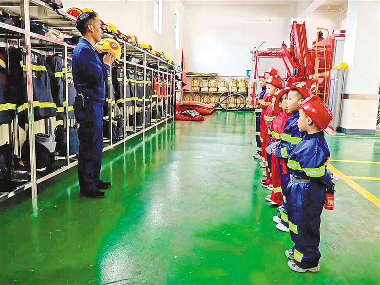 圖①:活動中,消防員為孩子們講解防火安全常識。