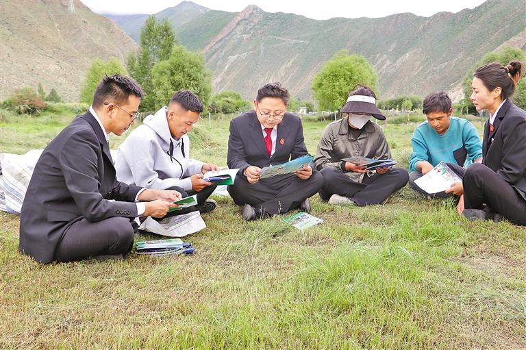 圖為山南市桑日縣人民法院干警在田間地頭為群眾宣傳法律知識。 記者 巴桑旺姆 攝