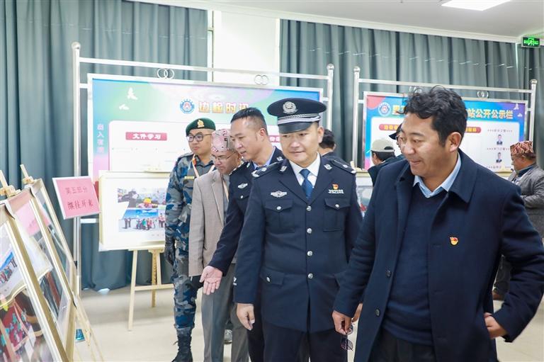 中尼雙方參加里孜口岸通關一周年慶典主要領導參觀里孜邊檢一周年成果展。