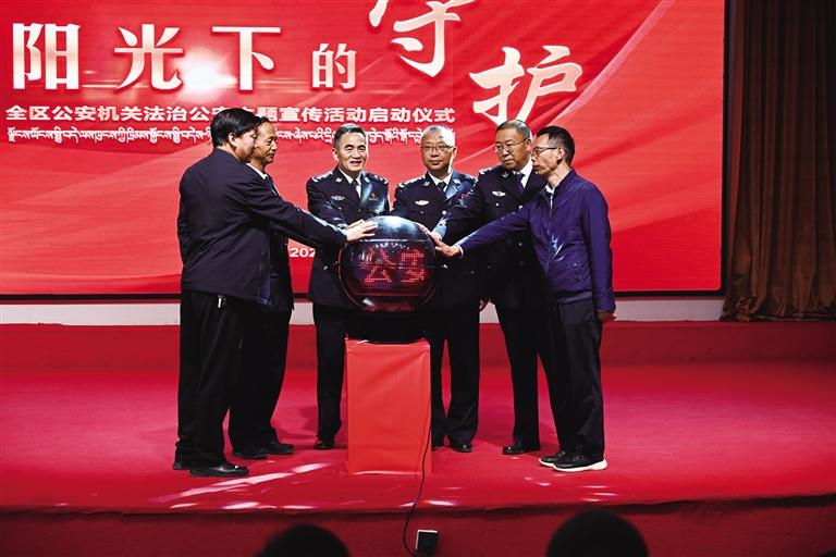 今年是習(xí)近平法治思想提出5周年。為認(rèn)真落實(shí)公安部黨委、自治區(qū)黨委政府關(guān)于學(xué)習(xí)貫徹習(xí)近平法治思想有關(guān)工作部署,充分展現(xiàn)全區(qū)公安機(jī)關(guān)學(xué)習(xí)宣傳貫徹習(xí)近平法治思想的生動(dòng)實(shí)踐和推進(jìn)法治公安建設(shè)的豐碩成果,6月10日,全區(qū)公安機(jī)關(guān)“陽光下的守護(hù)”法治公安主題宣傳活動(dòng)啟動(dòng)儀式在日喀則市公安局桑珠孜分局舉行。