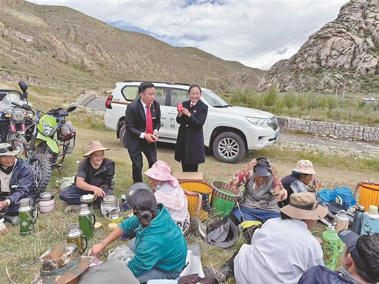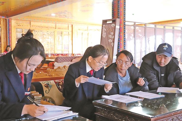 桑日縣人民法院工作人員在排查矛盾糾紛。記者 巴桑旺姆 攝