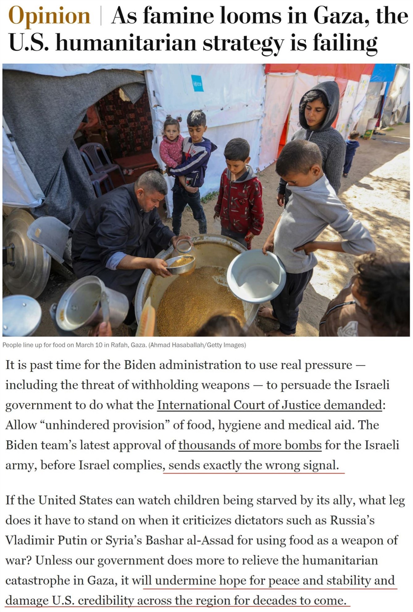 《華盛頓郵報》日前發(fā)文指出,隨著加沙地帶瀕臨饑荒,美國的“人道主義戰(zhàn)略”正在失敗。