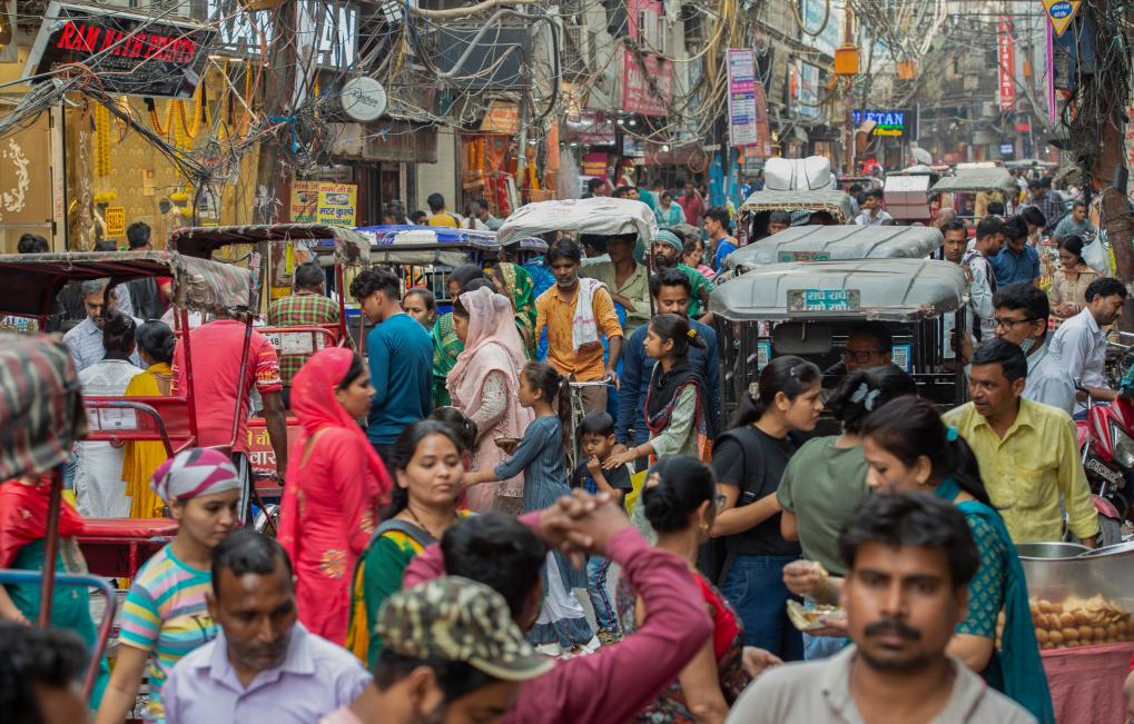 2023年4月26日,人們聚集在印度新德里的一處市場。新華社發(fā)(賈韋德·達(dá)爾攝)