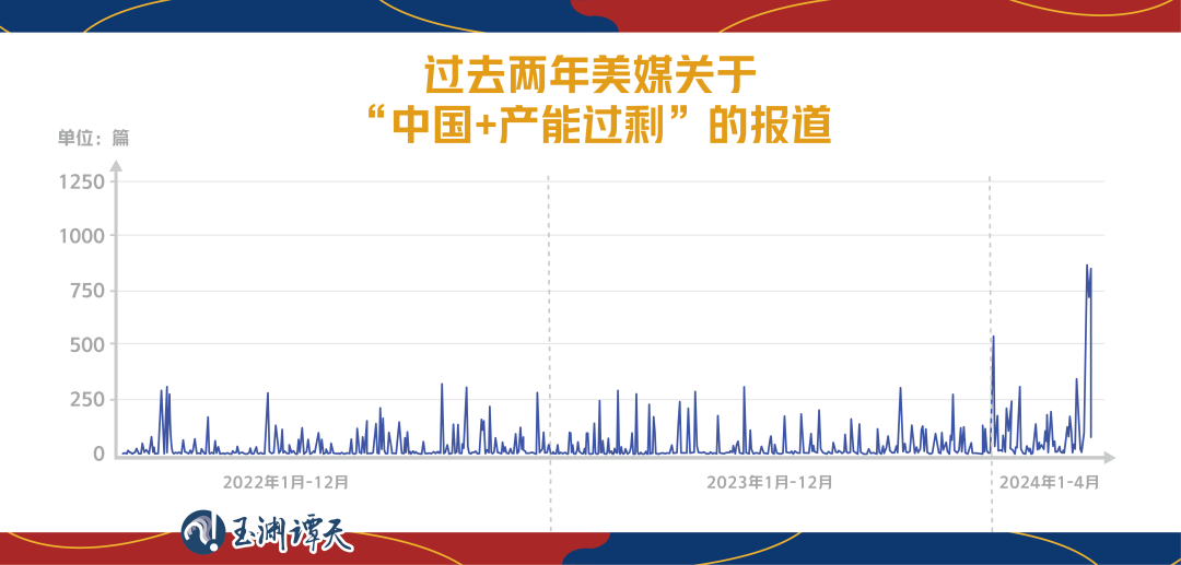 檢索美媒同時(shí)提及“中國”“產(chǎn)能過?!钡膱?bào)道,從數(shù)量變化中,可以看出,所謂中國“產(chǎn)能過?!钡脑掝},從2022年就已經(jīng)開始。