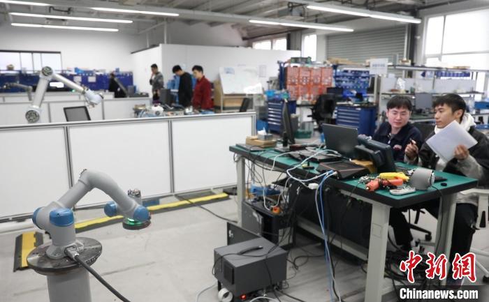 人工智能讓中國制造業(yè)從“追趕者”變身“領(lǐng)跑者”。圖為中科新松的工作人員正在對機(jī)器手臂進(jìn)行位置標(biāo)定。 張亨偉 攝