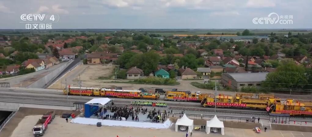 4月下旬,中塞兩國工人在巴奇卡托波拉站施工現(xiàn)場共同鋪設(shè)最后一組鋼軌,諾維薩德至蘇博蒂察至邊境高速鐵路,也就是匈塞鐵路諾蘇段實現(xiàn)鋪軌貫通。