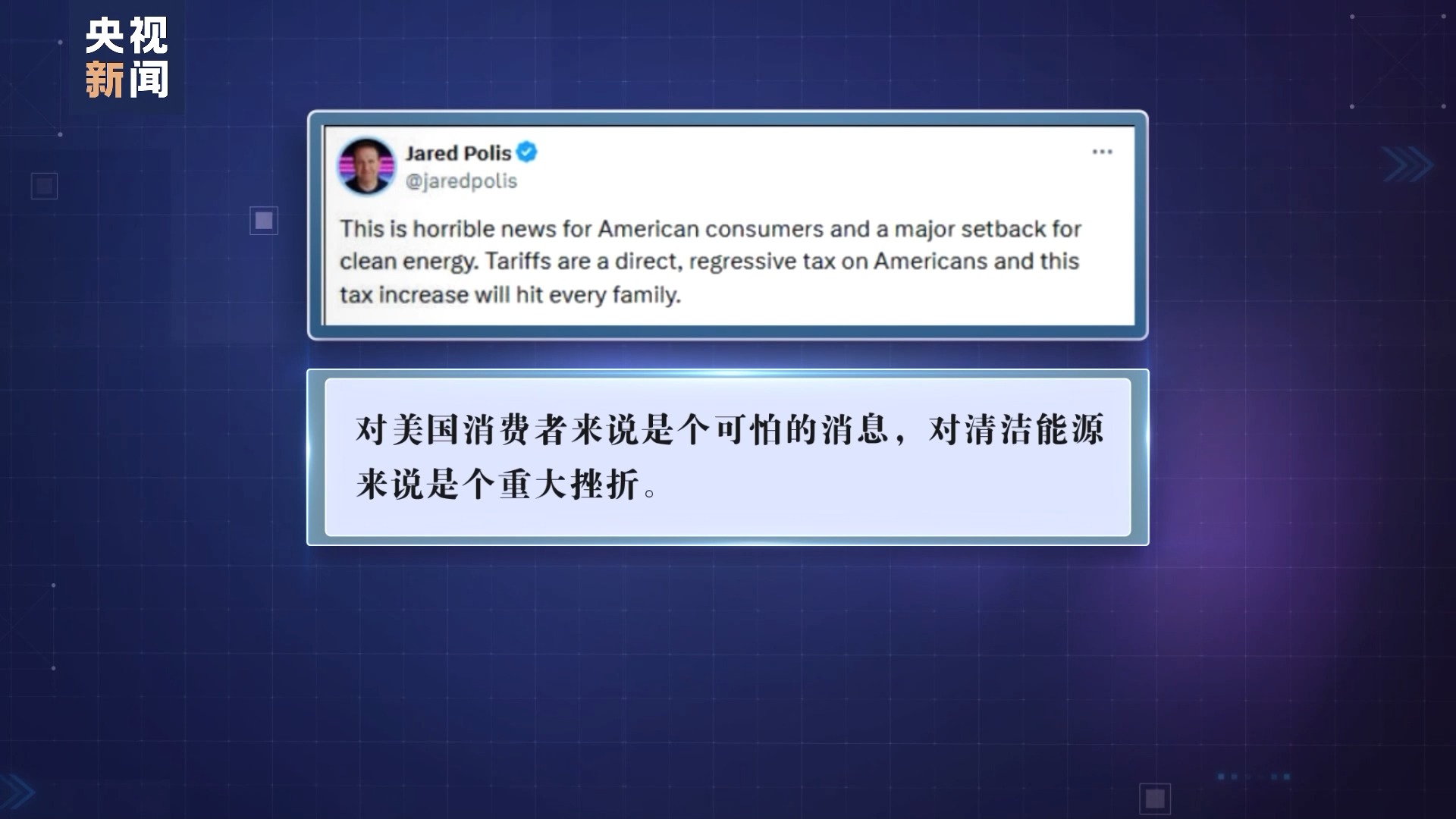 科羅拉多州民主黨籍州長賈里德·波利斯也在社交媒體平臺發(fā)帖寫道,此舉“對美國消費者來說是個可怕的消息,對清潔能源來說是個重大挫折”。