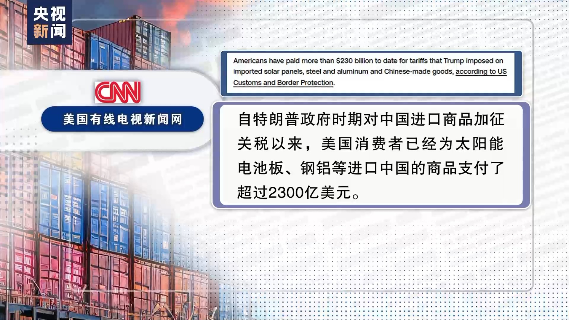 事實證明,美國保護主義措施無一例外只是“回旋鏢”式的自傷游戲。據(jù)美國有線電視新聞網(wǎng)3月引用美國海關(guān)及邊境保護局數(shù)據(jù),自特朗普政府時期對中國進口商品加征關(guān)稅以來,美國消費者已經(jīng)為太陽能電池板、鋼鋁等進口中國的商品支付了超過2300億美元。