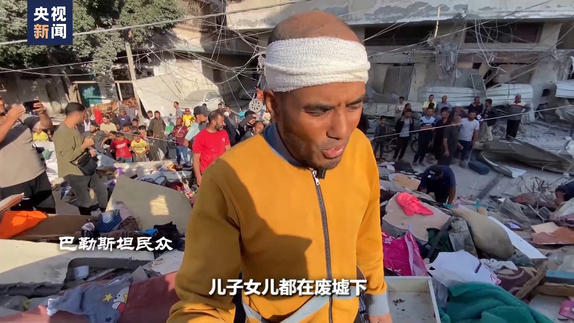 巴勒斯坦民眾:我的孩子們,兒子女兒都在廢墟下,還有我的妻子、我的父親,我們?cè)谒X時(shí)遭到了襲擊。