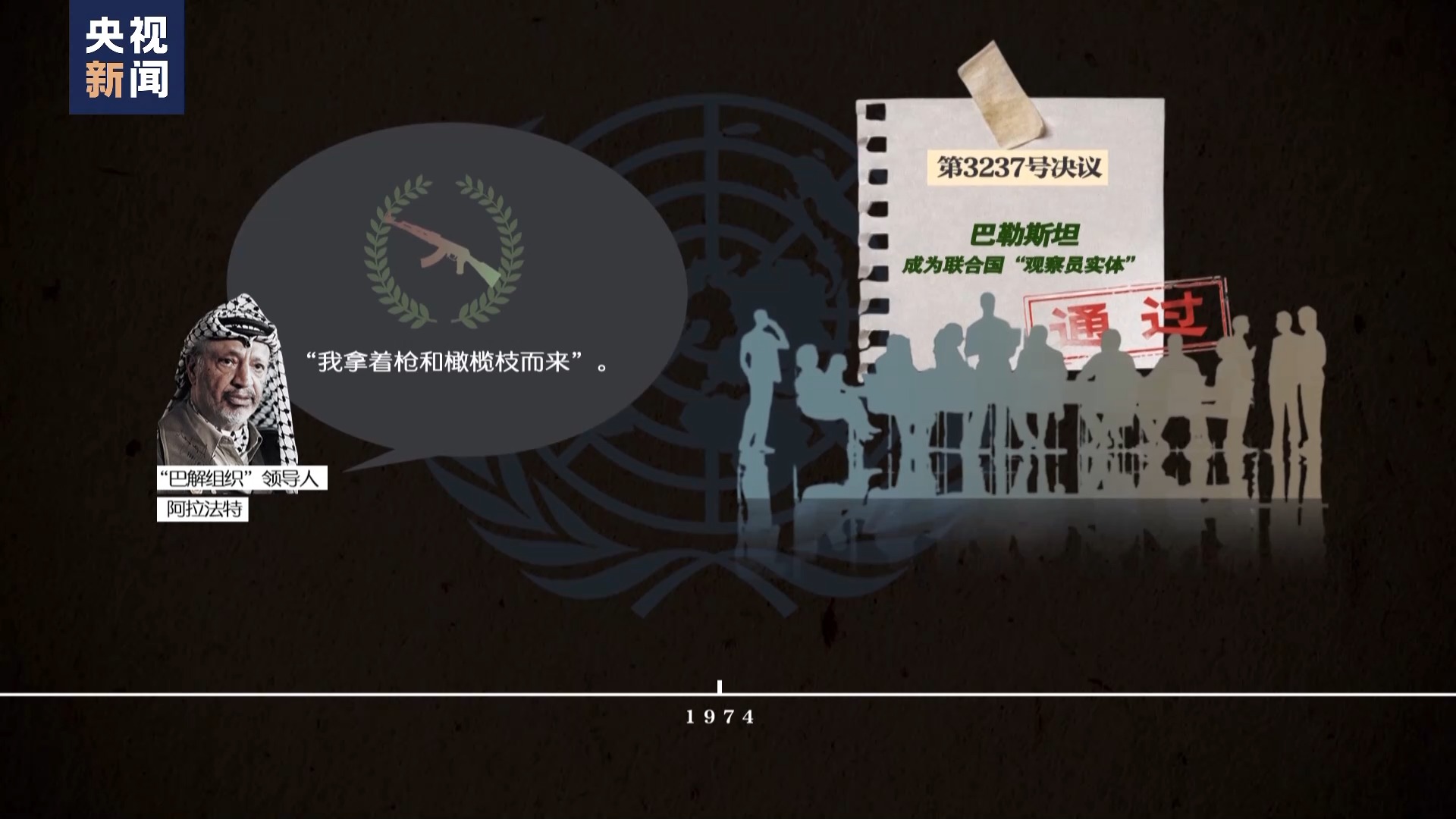 1974年,聯(lián)大通過第3237號(hào)決議,巴勒斯坦成為聯(lián)合國“觀察員實(shí)體”。