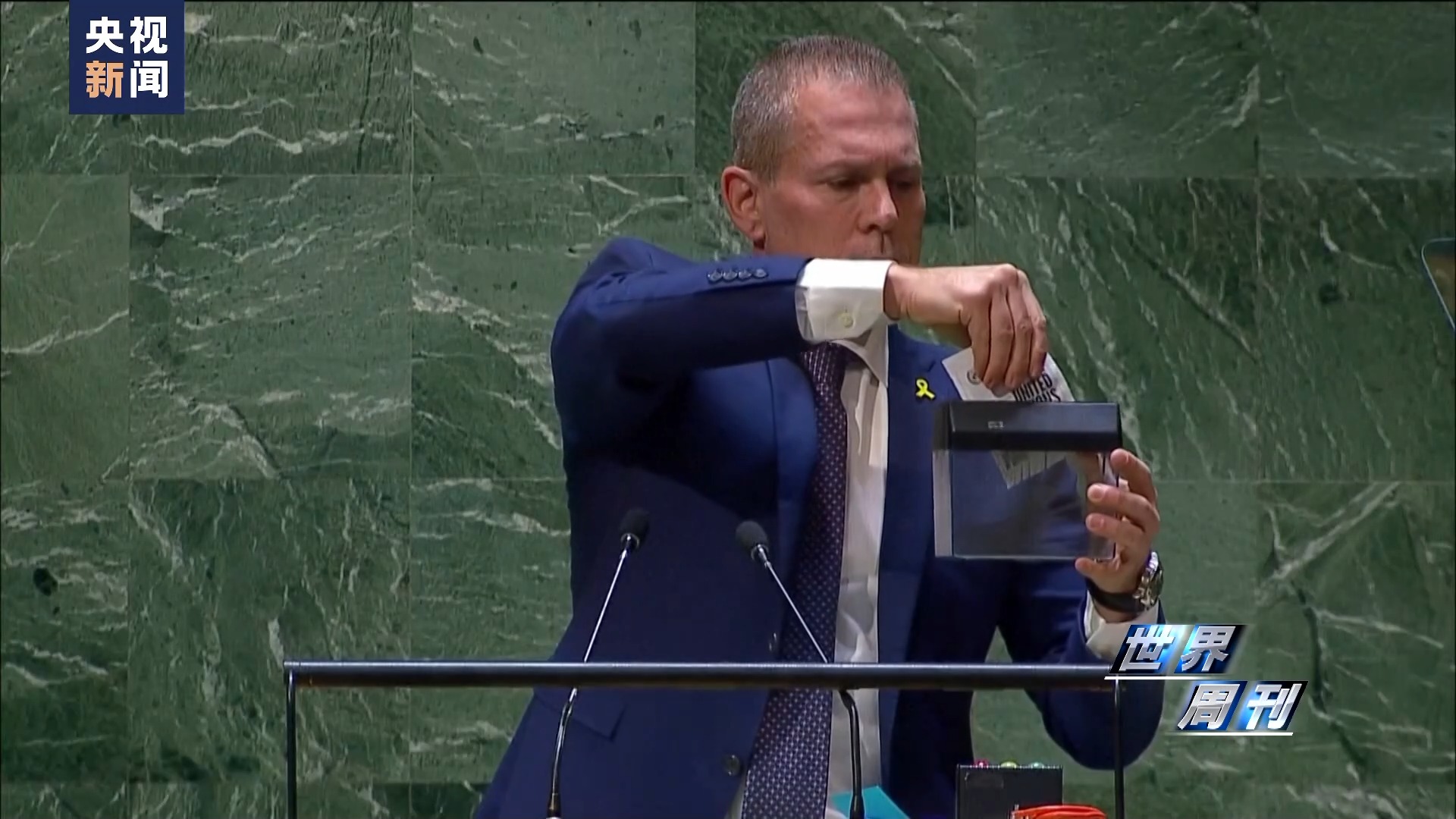 值得一提的是,聯(lián)大會(huì)場上還出現(xiàn)了驚人的一幕:以色列常駐聯(lián)合國代表埃爾丹掏出小型碎紙機(jī),將《聯(lián)合國憲章》封面插入其中當(dāng)眾粉碎。