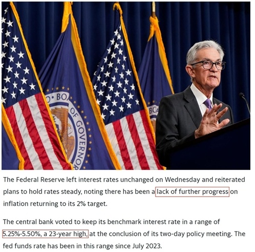 在本月初結(jié)束最新一次議息會議后,美聯(lián)儲決定繼續(xù)將聯(lián)邦基金利率維持在5.25%-5.0%的目標(biāo)區(qū)間,理由是在實(shí)現(xiàn)通脹目標(biāo)方面“缺乏進(jìn)一步進(jìn)展”。