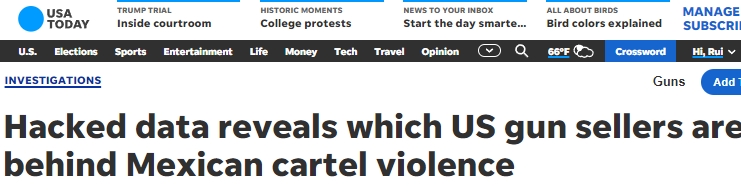 據(jù)《今日美國報》網(wǎng)站(USA Today)日前報道,此前墨西哥軍方情報遭到大規(guī)模泄露,其中涉及二十年來首次曝光的與從邊境南部收繳的7.8萬支槍有關(guān)的信息,包括與之相關(guān)的美國槍支商店、走私者以及販運槍支的類型。