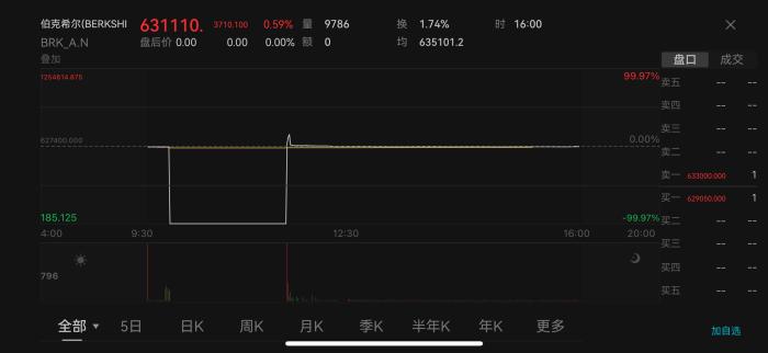 周一開盤,美股遭遇多股異動(dòng),40余只股票集體瞬間暴跌近100%。其中,股神巴菲特旗下的伯克希爾公司A類股從每股62萬美元的高價(jià)跳至185.1美元,巴里克黃金、紐斯卡爾動(dòng)力公司等股票一度掉至不到1美元/股的“白菜價(jià)”。