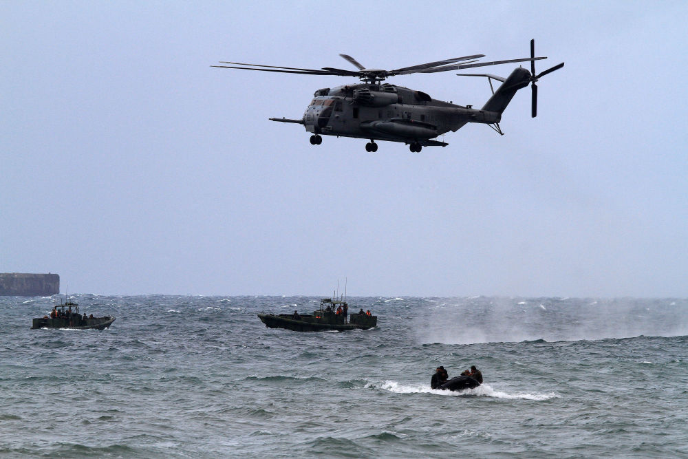 2013年9月20日,在菲律賓甲米地省,一架美軍CH-53E軍用直升機(jī)運(yùn)載美國(guó)和菲律賓士兵參加演習(xí)。新華社發(fā)(魯埃勒·烏馬利攝)