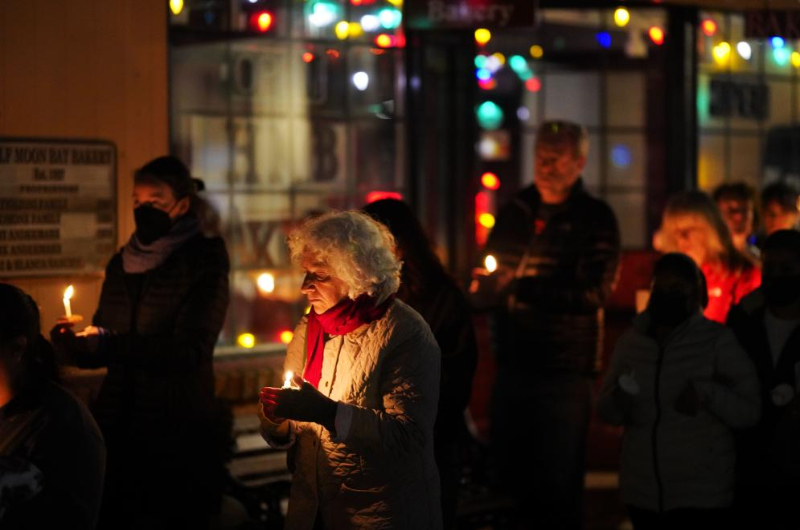 2023年1月31日,在美國加利福尼亞州半月灣市,人們手持蠟燭哀悼槍擊事件遇難者。新華社記者吳曉凌攝