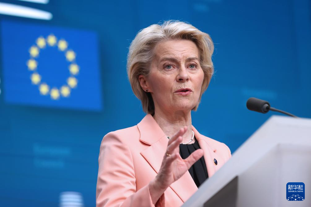 這是3月21日在比利時(shí)布魯塞爾拍攝的歐盟委員會主席馮德萊恩出席新聞發(fā)布會。新華社記者 趙丁喆 攝