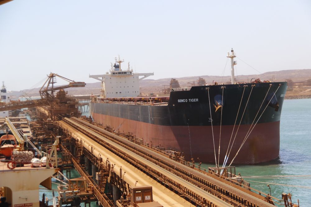 2023年10月20日,一艘運輸鐵礦石的遠(yuǎn)洋貨輪停泊在澳大利亞的丹皮爾港。新華社記者郝亞琳攝