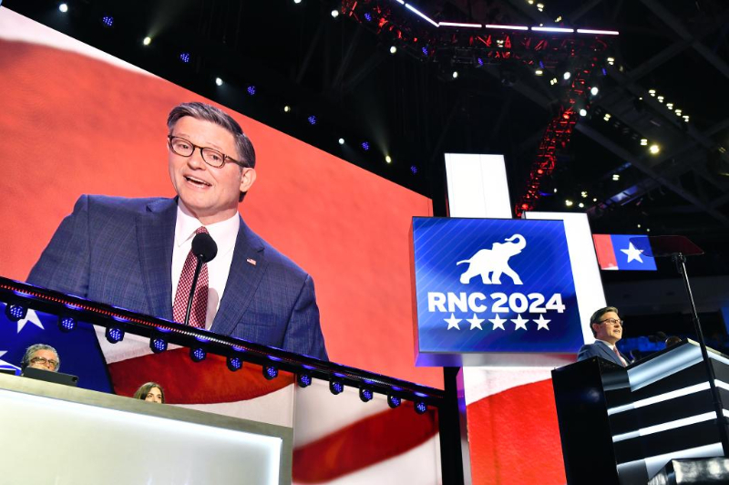 7月15日,在美國密爾沃基舉行的共和黨全國代表大會上,美國國會眾議院共和黨籍議長邁克·約翰遜正式宣布提名特朗普和萬斯為共和黨總統(tǒng)和副總統(tǒng)候選人。新華社記者李睿攝