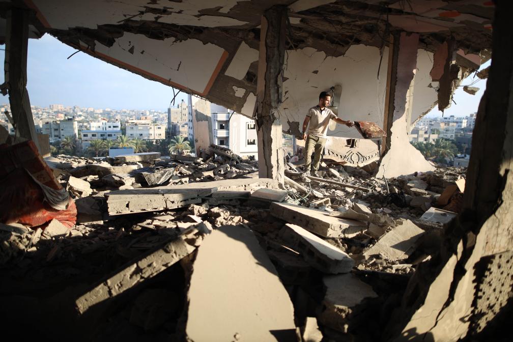 這是7月18日在加沙地帶中部努賽賴特難民營拍攝的遭到以軍襲擊的建筑廢墟。新華社發(fā)(馬爾萬·達(dá)烏德攝)