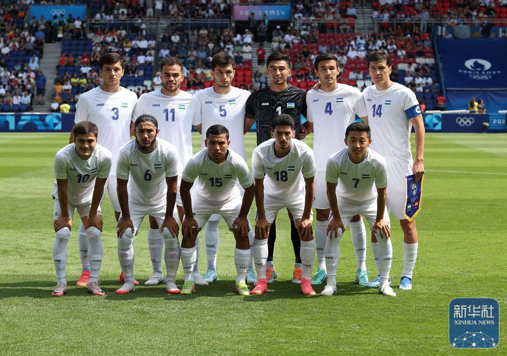 烏茲別克斯坦隊首發(fā)球員在賽前合影。新華社記者 黃宗治 攝