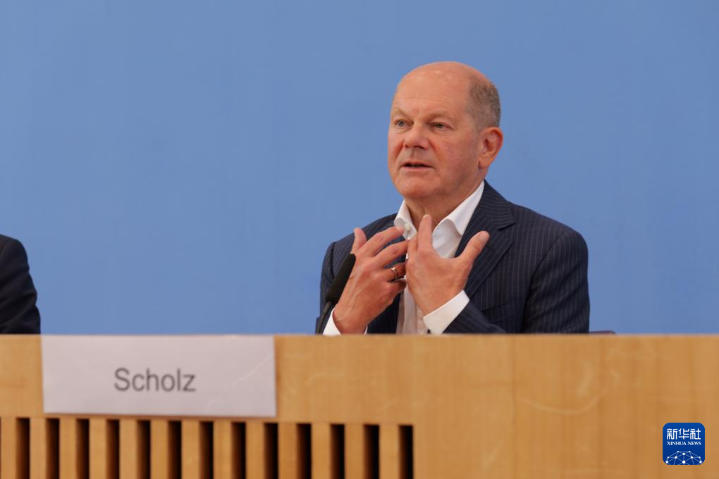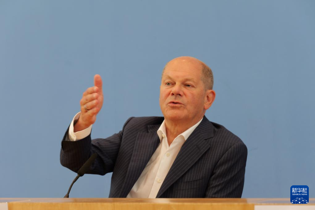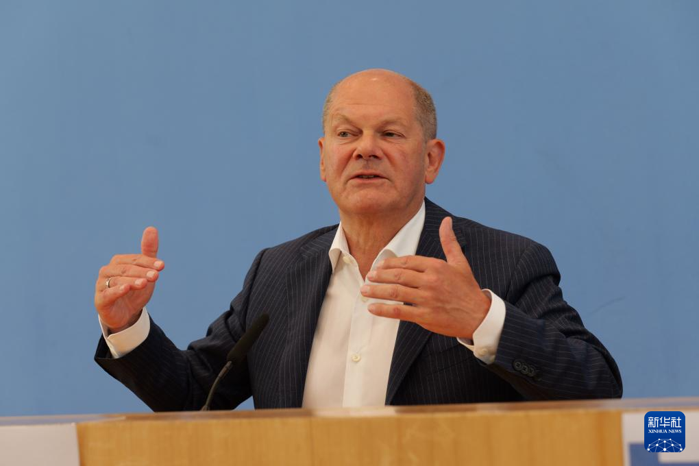7月24日,德國總理朔爾茨在柏林舉行的新聞發(fā)布會上講話。新華社記者 李函林 攝