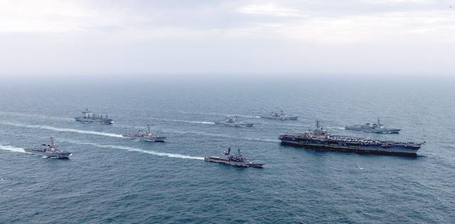 例如,美軍在西太平洋進行多邊反潛作戰(zhàn)演習,在南海與菲律賓海軍進行聯(lián)合行動,并與日本和韓國在東海進行三邊演習。此外,美國還與日本海上自衛(wèi)隊在菲律賓附近水域舉行了演習。