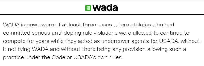 世界反興奮劑機(jī)構(gòu)前幾天披露,他們發(fā)現(xiàn)美國(guó)常年包庇至少3名嚴(yán)重違規(guī)“嗑藥”的運(yùn)動(dòng)員,理由居然是把這些人發(fā)展成了“線(xiàn)人”。這些“線(xiàn)人”整個(gè)職業(yè)生涯都在正常參賽和拿獎(jiǎng),自己就是“奉命作弊”,還指望他們抓作弊嗎?