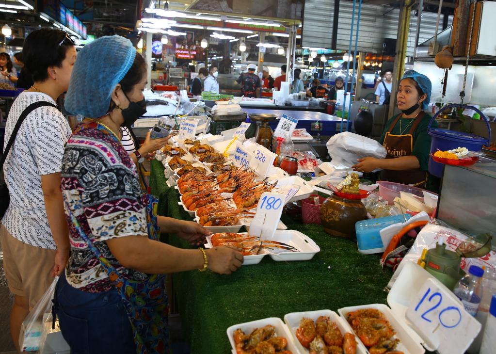 6月22日,人們在位于泰國曼谷的吞武里海鮮市場選購海鮮。新華社記者孫瑋彤攝