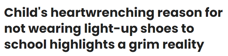文章提到,一位名叫林賽·范·艾倫(Lindsay Van Allen)的母親在一篇帖子中講述了給上五年級(jí)的女兒梅茜(Maisy)買新校鞋時(shí)發(fā)生的事情?!霸谖医o梅茜買上學(xué)穿的鞋時(shí),她跟我說不想要能發(fā)光的鞋子?!彼f,當(dāng)女兒特別強(qiáng)調(diào)一定不要買那雙可愛又新奇的LED發(fā)光鞋的時(shí)候,她以為這是因?yàn)楹⒆娱L大了,要上五年級(jí)了,不想讓自己看起來很幼稚。