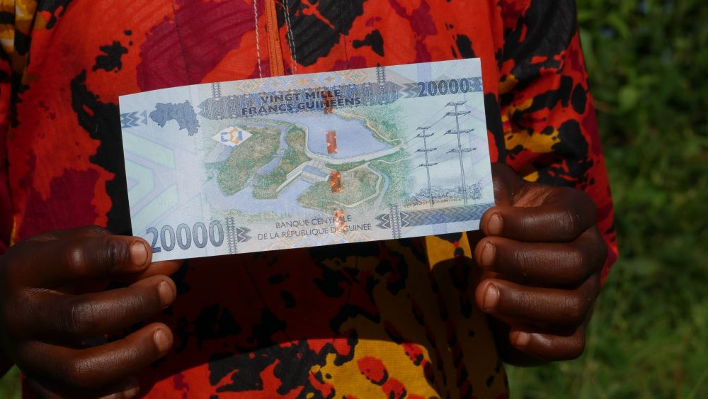 水電站的實(shí)際效果圖被印在面值2萬幾內(nèi)亞法郎紙幣背面。2023年9月7日攝。新華社記者鄭揚(yáng)子攝