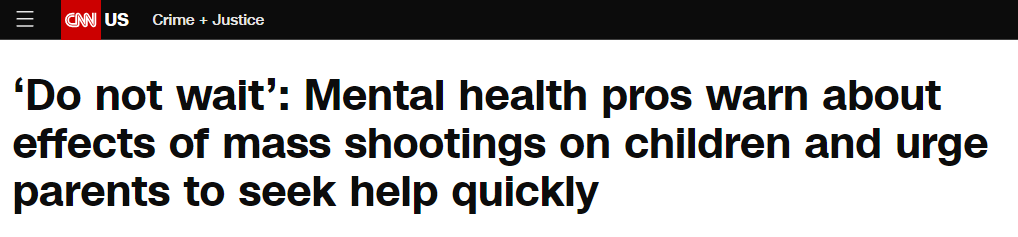 薩爾茲和羅辛-斯萊特都警告表示,(美國社會)急需對校園槍擊事件或一般槍支暴力事件中幸存的兒童及青少年出現(xiàn)的心理健康問題作出反應,這對保護他們的未來至關重要。
