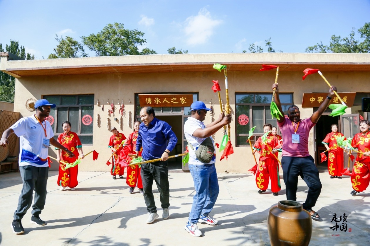 據(jù)介紹,黃羊古落有兩項國家級非遺稱號:黃羊錢鞭和中寧蒿子面制作工藝,且黃羊錢鞭已成為村民鍛煉的一種方式。外國記者也在充滿激情的音樂中和村民一起舞動起來。津巴布韋國家電視臺總經(jīng)理喬納森·提納沃·馬瑞瓦對環(huán)球網(wǎng)記者談?wù)撈饘τ邳S羊前鞭的感受,他說:“它非常完美,我的家鄉(xiāng)也有很多舞蹈,但與這里的不同。我喜歡這種形式的舞蹈,步伐統(tǒng)一,表現(xiàn)出了與眾不同的活力?!蓖瑫r,喬納森強(qiáng)調(diào)了黃羊錢鞭這類非物質(zhì)文化遺產(chǎn)的重要性:“這類舞蹈保持了文化的完整性。它歷史悠久,流傳至今,也將延續(xù)到未來。它讓這種蓬勃的生命力會一直存在于孩子們的記憶里?!?/p>