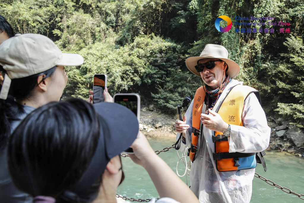 25日,2024中國故事共創(chuàng)會(huì)“外籍網(wǎng)紅貴州行”采訪團(tuán)一行來到貴州省黔西南興義市,在興義市馬嶺河峽谷欣賞自然奇觀,體驗(yàn)特色漂流。