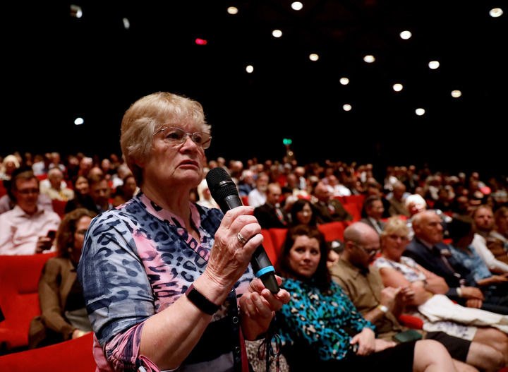 2023年8月15日,在英國倫敦,“里斯本丸”號幸存者丹尼斯·莫利之女丹妮絲·維尼在紀(jì)錄片《里斯本丸沉沒》放映活動上與主創(chuàng)人員交流。新華社記者 李穎 攝