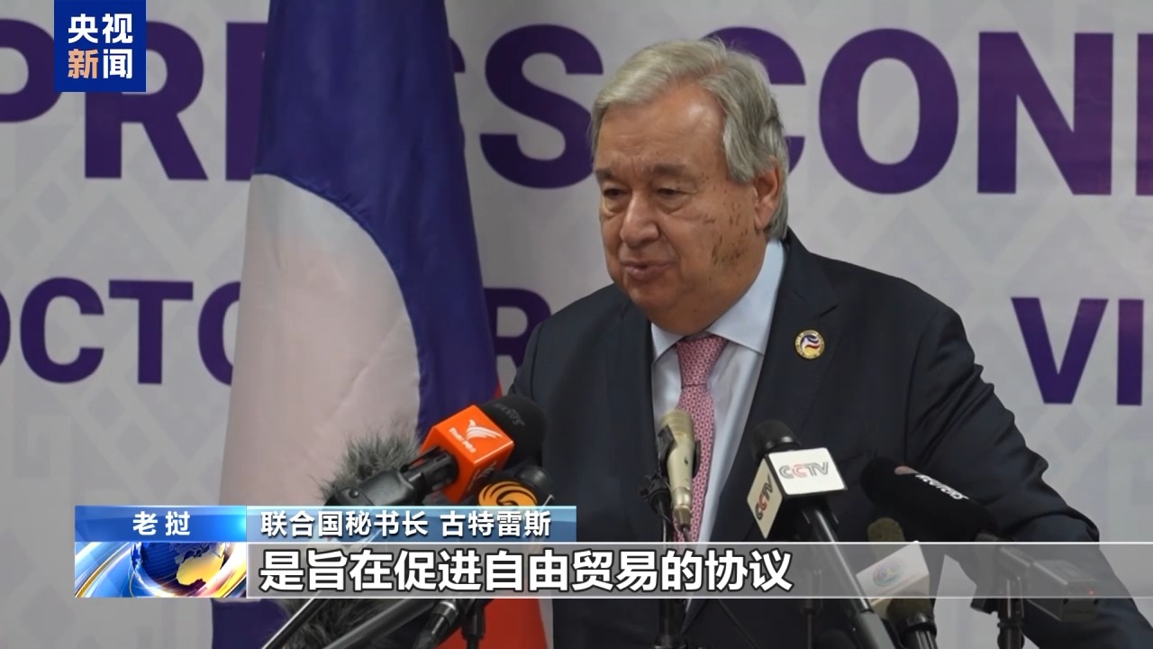 聯(lián)合國秘書長古特雷斯在回答總臺記者提問時贊賞中國—東盟自貿(mào)區(qū)3.0版,表示此次升級將促進全球自由貿(mào)易和經(jīng)濟增長。
