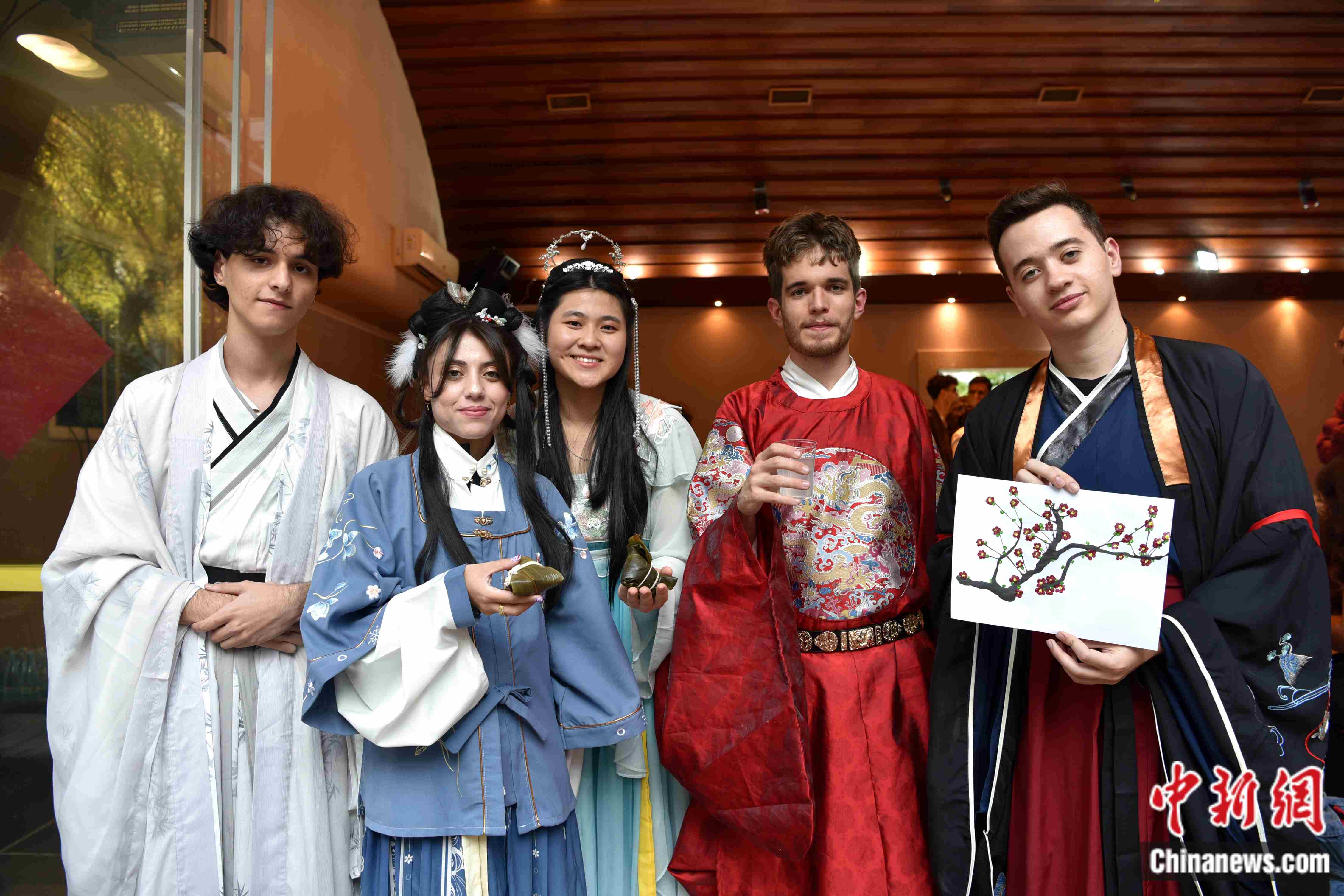 資料圖:中國駐圣保羅總領(lǐng)館舉行端午開放日,圣保羅州立大學(xué)孔子學(xué)院40余位學(xué)子共慶端午。巴西青年學(xué)子們穿上漢服,誦讀中國古詩詞,包粽子,沉浸式體驗(yàn)中國端午習(xí)俗。 中新社記者 林春茵 攝