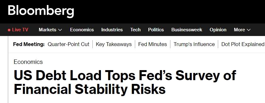 彭博社(Bloomberg)在報道中提到,美國政府的債務(wù)負(fù)擔(dān)現(xiàn)在被認(rèn)為是金融穩(wěn)定面臨的最大風(fēng)險,在美聯(lián)儲的一項調(diào)查中,其重要性超過了持續(xù)的通貨膨脹。逾半數(shù)受訪者(54%)認(rèn)為美國財政債務(wù)的可持續(xù)性是一個突出風(fēng)險,而半年前這一比例僅為40%。美聯(lián)儲的半年度金融穩(wěn)定報告寫道:“美國財政債務(wù)可持續(xù)性方面的擔(dān)憂位居榜首,其次是中東緊張局勢升級和政策的不確定性?!?/p>