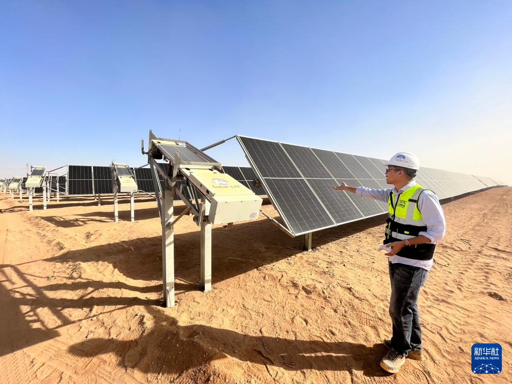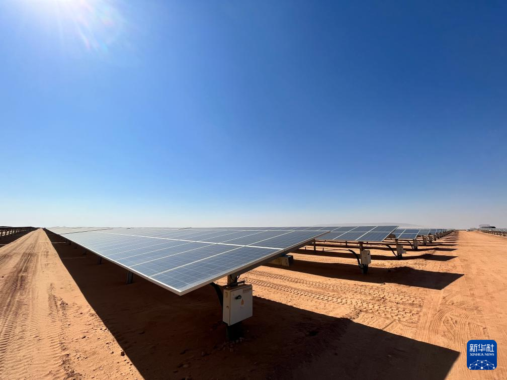 充沛的光照讓埃及具備得天獨厚的光伏發(fā)電條件。本班光伏產(chǎn)業(yè)園占地面積37平方公里,規(guī)劃建設40座太陽能發(fā)電廠,總裝機容量約2千兆瓦,目前已有32座發(fā)電廠建成并投入運營。廣袤的撒哈拉沙漠中,高高架起的光伏板像棋盤格一樣鋪展開,從高處俯瞰猶如藍色海洋。光伏板跟隨太陽的位置調(diào)整角度,炙熱的陽光被源源不斷轉(zhuǎn)化為電力能源。