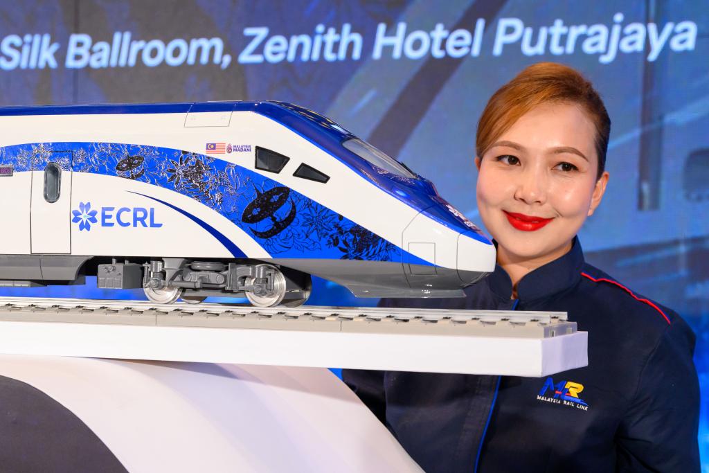 12月18日,在馬來(lái)西亞普特拉賈亞,模特與新的動(dòng)車組模型合影。新華社發(fā)(張紋綜攝)
