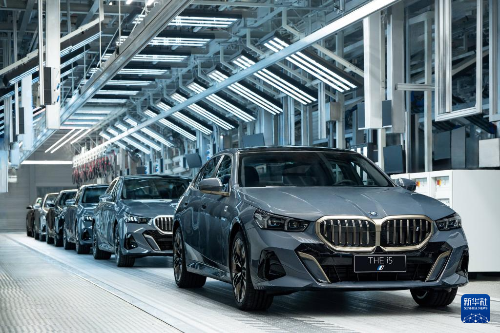 寶馬i5純電動(dòng)汽車(chē)從位于遼寧的大東工廠(chǎng)下線(xiàn)(2024年1月8日攝)。新華社發(fā)(寶馬集團(tuán)供圖)